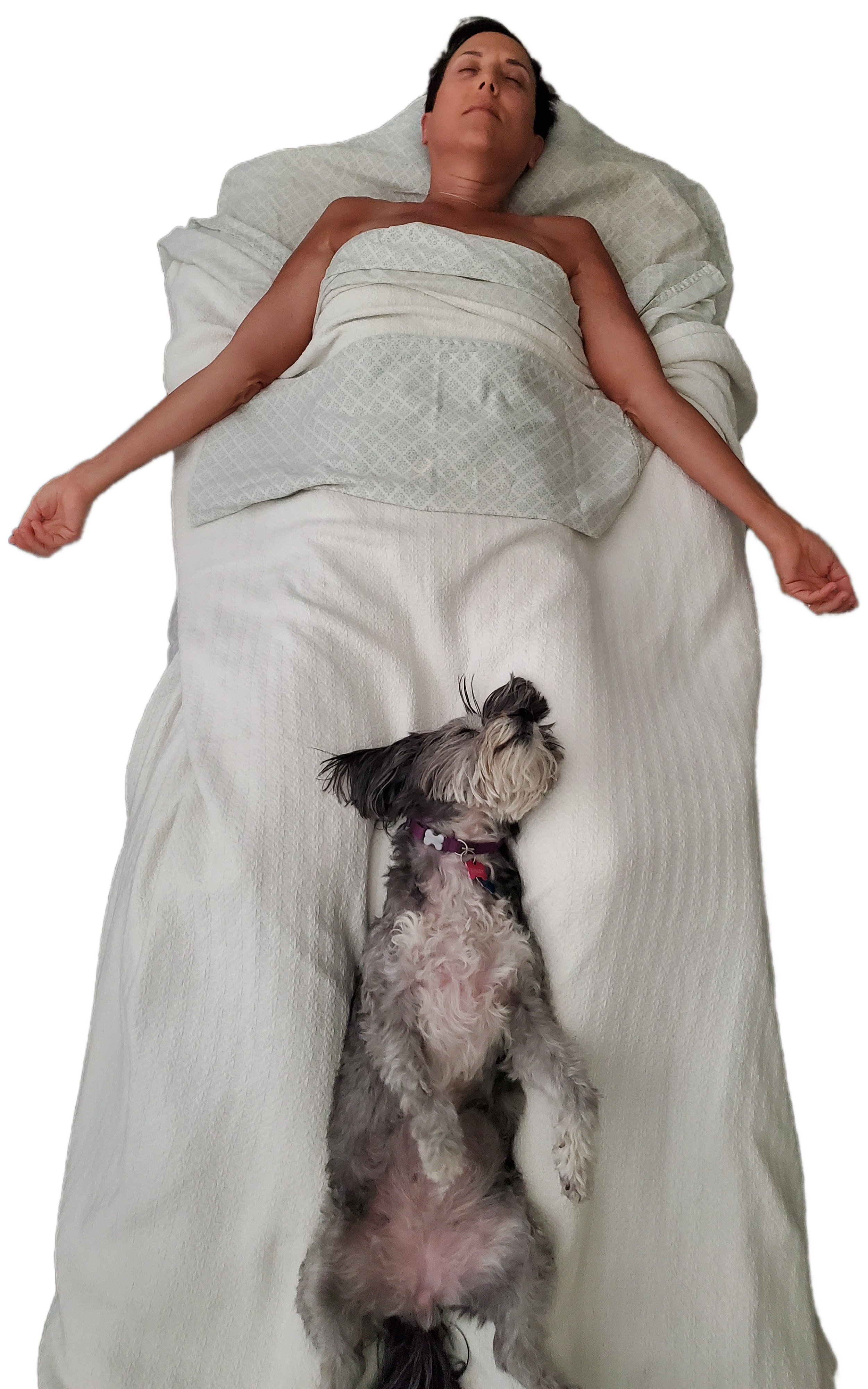 Actual client and her beloved dog enjoying a healing session with Ananda together
